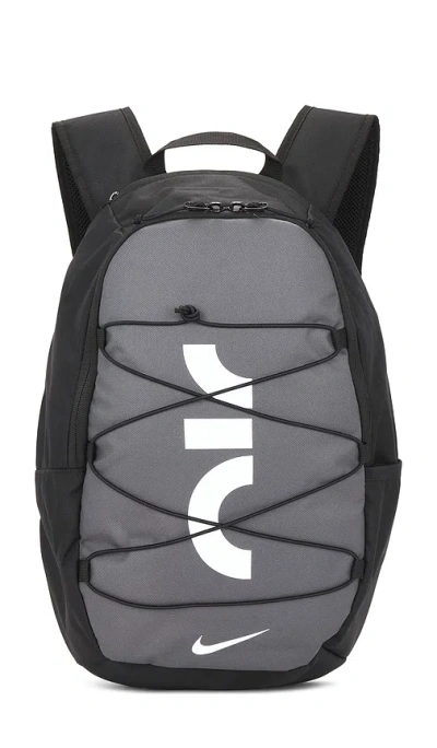 Nike Air Backpack in Black. Nike Air Backpack in Black. Ripstop exterior and lining. Wrap around closure. One main compartment. One interior padded sleeve for up to a 15 laptop. Front bungee cord system for quick external stashing of items like jackets or gear. Water-bottle pocket on one side. Measures approx 14 W x 19 H x 5.5 D. NIKR-MY42. DV6246-010. Centered around humanity and athletic innovations, Nike believes that if you have a body, you are an athlete. From footwear to an incredible variety of clothing, Nike is about enhancing performance while looking and feeling your best. Many of their shoe styles have become rare collector's items because of their limited quantity and unique, yet classic design. Their-performance focused technologies have revolutionized athletic wear, while their exclusive fabrics such as Dri-Fit, AeroReact, and Storm-Fit highlight both function and aesthetics. Beyond apparel, Nike invests in the power of people, planet, and play with practices that seek to better serve the environment and support women in the workforce.