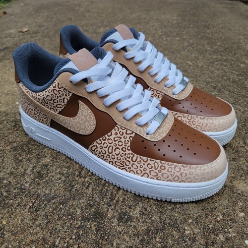 * Add some style with these hand painted leopard print AF1s low tops! Made to be worn. * Solid beige and light beige paneling throughout, combined with brown paneling to add contrast. Fading out leopard print, dark grey insole. * Shoes will be deglazed with acetone, and entirely hand painted with high quality leather paint. Paint will be flexible and permanent with a semi-matte finish. * Since shoes are hand painted, all leopard spots will be different from the next pair. * Colors may vary slightly from photos. *THESE SHOES ARE MADE TO ORDER. When you make your purchase through eBay, the all white Air Force 1 will be purchased from the official store, or licensed retailer. Once the shoes come in after a few days, they will be deglazed, painted, sealed, and shipped out in a timely manner. Please allow a maximum of 30 days for the shoes to be shipped, although the goal is to have them sent out much sooner. Updates will be given to ensure expected delivery. * Please ask any questions to ensure a quality purchase