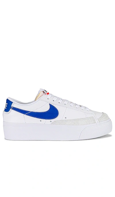 NIKE Blazer Low Platform Sneakers In White And Blue