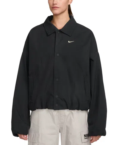 NIKE Buttoned Cinched Jacket In Black
