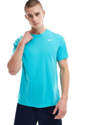 Updating the Legend T-shirt, this sweat-wicking tee is soft in all the right ways. We also cut it with a more relaxed, looser fit than previous versions so you can move through your reps without missing a beat. Benefits:Nike Dri-FIT technology moves sweat away from your skin for quicker evaporation, helping you stay dry and comfortable. Jersey fabric feels soft and smooth. Updated for a more relaxed feel that is slightly looser through the chest, waist and hips than previous versions. Product Details:Standard fit for a relaxed, easy feel. Ribbed neckband. 100% polyester. Machine wash. Imported. Style: DX0989; Color: Dusty Cactus/Matte Silver; Size: S; Gender: Male; Age Group: Adult | Nike Dri-FIT Legend Men's Fitness T-Shirt in Green, Size: Small | DX0989-345
