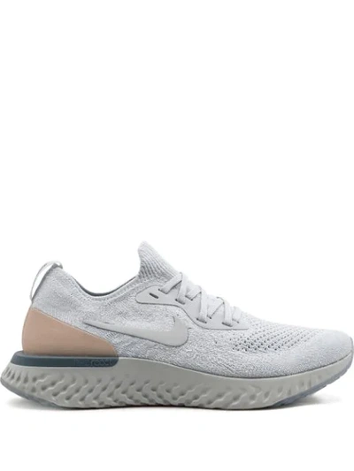The women's Nike Epic React Flyknit sneakers running innovations with fashion-forward color blocking. The women's running shoe has ridiculously responsive foam cushioning that is both durable and soft. Subdued with a neutral palette, this model comes with a pale platinum grey upper atop a darker grey sole unit.These styles are supplied by a premium sneaker and streetwear marketplace. Stocking only the most sought-after footwear and clothing, they source and curate some of the most hard-to-find items from around the world.