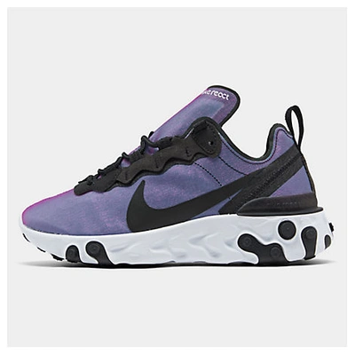 Nike React technology for a smooth, well cushioned ride Reflective details throughout for notice-me style Design elements borrowed from the Nike Internationalist TPU heel clip for a stable feel Rubber pods for durable traction Elevated upper boasts lightweight textile and high sheen The Women's Nike React Element 55 Premium is imported. Get a reaction with every step you take in the eye-catching Women's Nike React Element 55 Premium Casual Shoes. Modern design teams up with elements inspired by classic Nike sneakers for a nod to the past and a look towards the future.