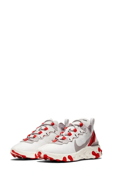 NIKE React Element 55 Sneaker In Platinum/ Silver/ Red