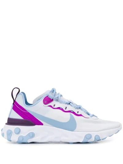 RUNS SMALL: Consider sizing up for a more comfortable fit Nike React technology for a smooth, well cushioned ride Reflective details throughout for notice-me style Design elements borrowed from the Nike Internationalist TPU heel clip for a stable feel Rubber pods for durable traction Elevated upper boasts lightweight textile and high sheen The Women's Nike React Element 55 is imported. Get a reaction with every step you take in the eye-catching Women's Nike React Element 55 Casual Shoes. Modern design teams up with elements inspired by classic Nike sneakers for a nod to the past and a look towards the future.