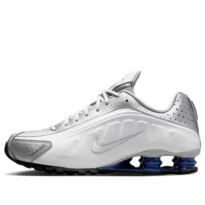 A recrafted version of the early 2000s icon, the Nike Shox R4 replicates the original with its futuristic design lines and performance-like cushioning. Nike Shox columns in the heel distribute weight to maximize comfort while providing a bold look on the streets. Benefits:Synthetic and textile upper is soft and durable. Nike Shox technology features resilient, flexible columns that compress and regain shape for outstanding cushioning. Modified, circular Waffle outsole offers great traction. Laser perforations throughout provide ventilation. [] Product Details:Foam midsole. Rubber outsole. Not intended for use as Personal Protective Equipment (PPE). Style: HQ1988; Color: White/Metallic Silver/Deep Royal Blue/White; Size: 10.5; Gender: Male; Age Group: Adult | Nike Shox R4 Men's Shoes in White, Size: 10.5 | HQ1988-102