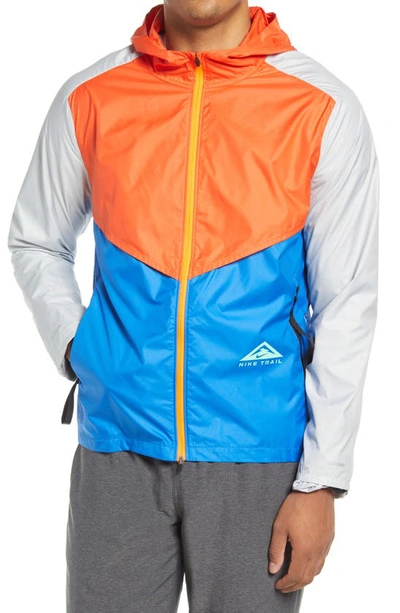 NIKE Windrunner Packable Jacket In Orange/signal Blue/fog/green