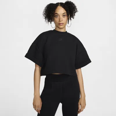 Women's Sportswear Tech Fleece Oversized Short-sleeve Cropped Top In Black