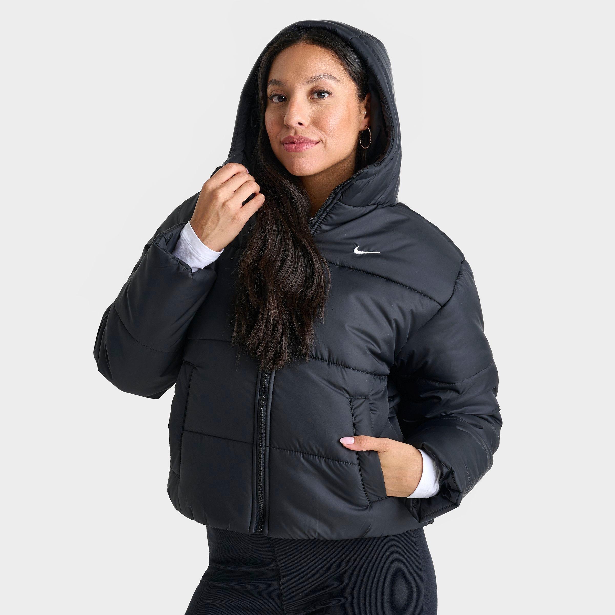 Size & Fit Loose fit Hip-length Product Features Weatherized fpuffer coat with embroidered Nike Swoosh at left chest for signature style Water-repellent finish Attached hood with foldable storm bill and bungee toggle closure for personalized fit Elastic hem with full-zip closure Nike Therma-FIT technology assists in natural body heat retention Press-stud and zippered hand pockets for convenient and secure storage of essential items and cold hands 100% Polyester Machine wash The Nike Sportswear Therma-FIT Classic Puffer Jacket is imported. Conquer the cold cozily covered in iconic Swoosh style wearing this Women's Nike Sportswear Therma-FIT Classic Puffer Jacket. This puffer coat is crafted from a water-repelling polyester fabric equipped with heat-retaining Nike Therma-FIT technology, warm synthetic insulation, and an attached 3-panel hood with a foldable storm bill, all signed off with the signature Swoosh.