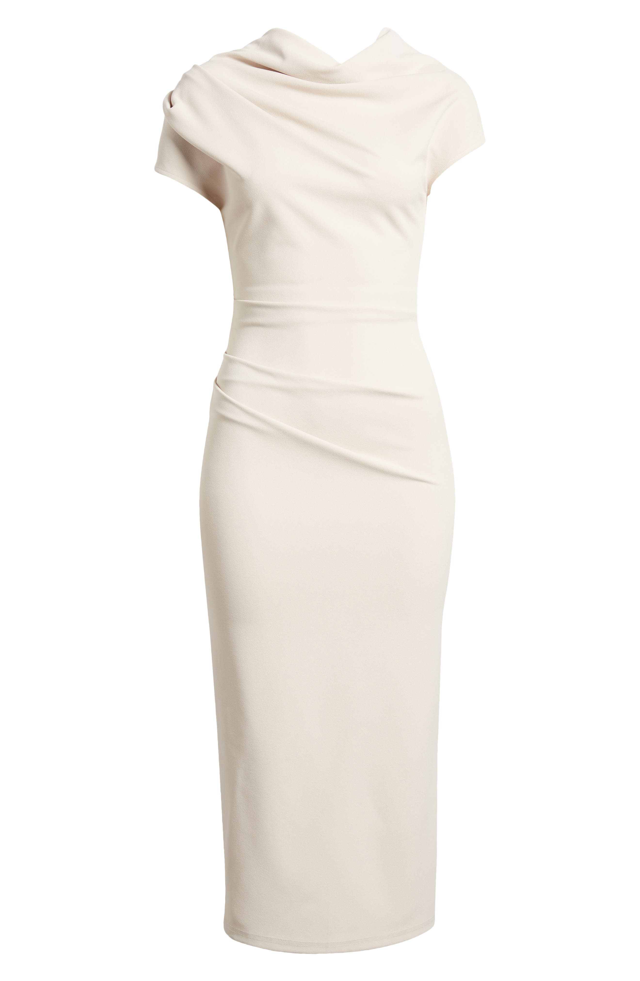 NIKKI LUND Kathleen Midi Sheath Dress In Beige