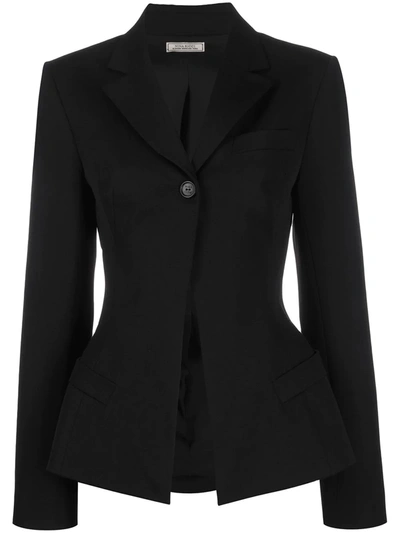 Black wool structured blazer from Nina Ricci featuring a chest pocket, a front button fastening, side pockets, a structured fit and long sleeves.