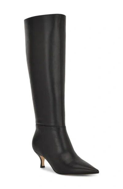 Nine West Somas - Women's Boots : Black Leather : Sleek, chic, and ready to go: The Nine West Somas. Designed to command attention, these wardrobe staples blend timeless design with modern flair. Crafted with a supple leather upper and a soft fabric lining, they keep you comfortable while exuding luxury. The knee-high silhouette elongates your legs, while the pointed toe and stylish tapered kitten heel add a refined, fashion-forward edge. A zippered side closure ensures easy wear, and the durable synthetic rubber outsole offers dependable traction with every stride. ; Imported. Measurements: ; Heel Height: 2 0 1 in ; Weight: 1 lb ; Circumference: 14 1 6 in ; Product measurements were taken using size 9, width M. Please note that measurements may vary by size. | Nine West Somas Women's Boots Black Leather : 9 M