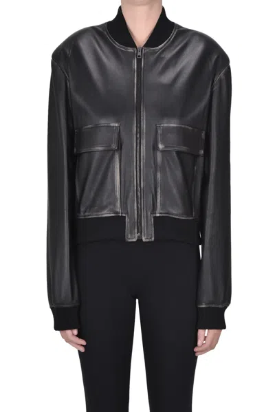Old looking effect leather biker jacket, zip-fastening at front, ribbed knit trims. COMPOSITION: 100% Leather (lining) 100% Viscose Made in Italy