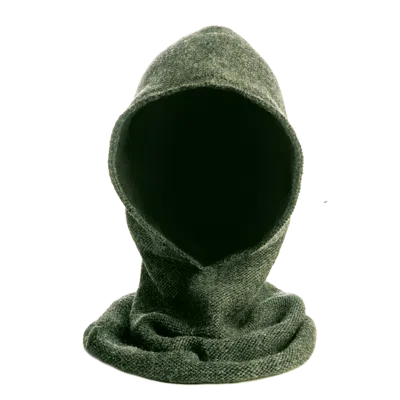 100% wool hood with fleece lining. Handmade in Nepal. Our products are hand-knit from 100% wool and lined with fleece; therefore, they require specific care: Hand wash separately in cold water. Line Dry. Do not Bleach