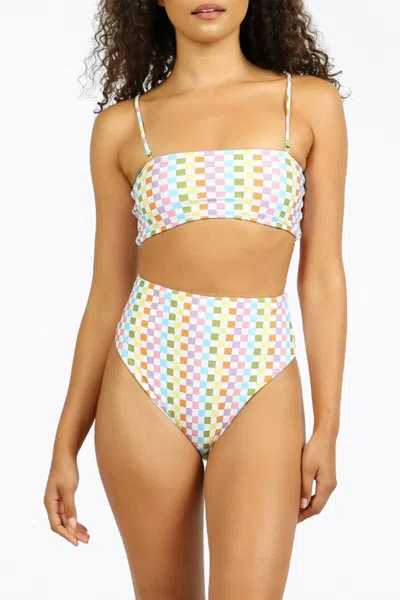 NIRVANIC Brooklyn High-waisted Bikini Bottom In Eco Rainbow Check In Multi