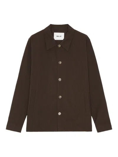 dark brown classic collar front button fastening side pockets long sleeves stitched lines