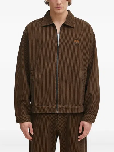 Striped-pattern Zip Jacket In Brown