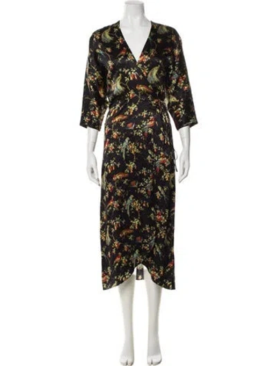 Pre-owned Silk Printed Robe In Black