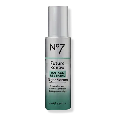 FUTURE RENEW NIGHT SERUM 0.845OZ. Benefits: TARGETS MULTIPLE SIGNS OF SKIN DAMAGE: Reverses the appearance of fine lines, wrinkles, uneven tone and texture, dry skin and the feeling of lost elasticity/firmness.. CUTTING-EDGE TECHNOLOGY: Powered by No7's World First Peptide technology, now expertly crafted for night-time use.. LIGHTWEIGHT TEXTURE: Luxurious, non-greasy formula that absorbs quickly into the skin.. EXPERT BACKING: Dermatologist-approved and clinically proven.. Research Results: POWERFUL DAMAGE REVERSAL: 100% had clinically proven results**. INSTANT RESULTS: Skin feels softer, instantly hydrated after the very first use**. PROVEN RESULTS IN ONE WEEK: After one week, skin looks smoother, firmer and more radiant**. **Consumer Study. :
