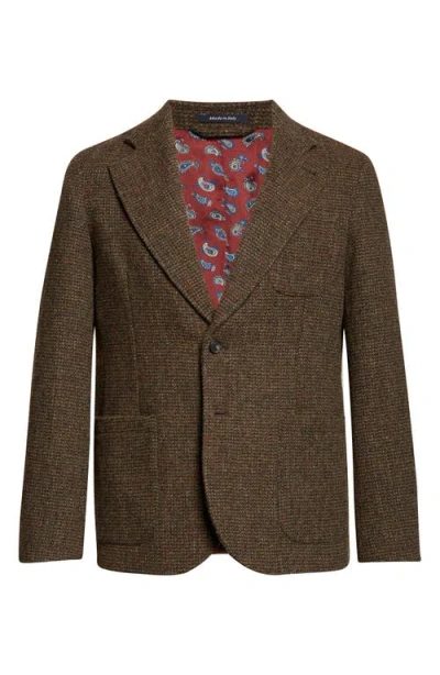 Cut from Harris Tweed wool, this sport coat brings heritage tailoring into a looser unstructured frame that moves with relaxed, modern attitude. The deep brown tone and elbow patches nod to retro finds, while roomy patch pockets add a touch of utility. Front button closure Notched lapels One-button cuffs Chest patch pocket; front patch pockets Lined 100% wool Dry clean Made in Italy Designer Clothing