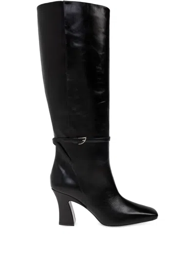 Nodaleto "Scarlett" kneehigh leather boots 3.25 in / 85 mm block heel Pointed toe Wraparound buckle strap Pullon style Leather/Rubber outsole Lining: Leather Trim: Leather Made in Italy