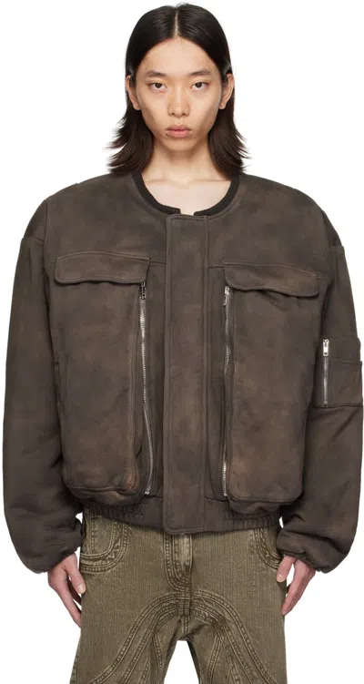 NO/FAITH STUDIOS Brown Removable Shoulder Bomber Jacket