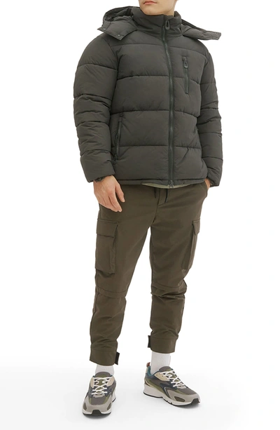 A boxy puffer jacket is filled with warmth to offer casual-cool winter styling. 29.5" length (size M) Stand collar with attached hood Long sleeves Zip front Zip chest pocket Zip slant pockets Quilted 100% nylon; 100% recycled RePet fill Machine wash, line dry Imported Model stats: 6'1" height, 32" waist. Model is wearing size M