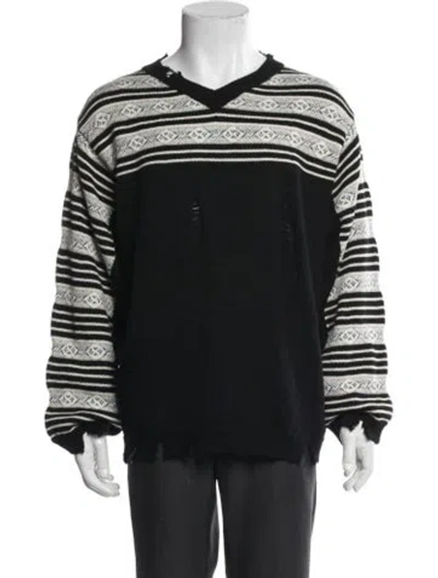 NOMA t.d Wool Pullover Black Striped Cutout & Distressed Accents Long Sleeve with V-Neck | NOMA t.d Wool Striped Pullover in Black, Men's L