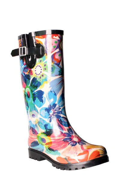 NOMAD Puddles Waterproof Rain Boot In Blue Flower Multi