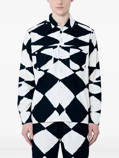 black and off-white diamond pattern spread collar long sleeves button fastening chest patch pockets button-fastening cuffs