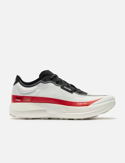 Norda norda 005 Lightweight bio-circular Dyneema® upper Lace-up closure with 4mm Dyneema laces Perforated micro-suede tongue Reflective piping details 005 Fit-Lock System Molded Arnitel® TPEE insole Pure Arnitel® (TPEE) midsole Vibram® Megagrip Elite rubber outsole Color: Laser