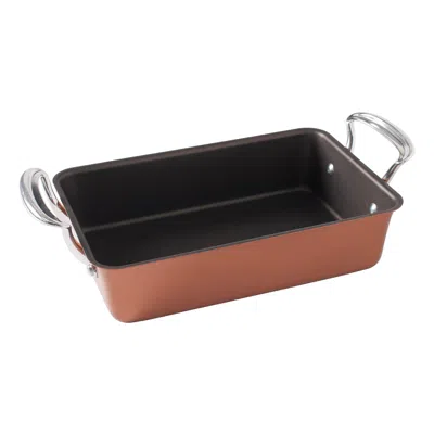 This large roaster by Nordic Ware is constructed of sturdy aluminized steel and has large, polished cast aluminum handles for an easy grip, even with oven mitts. The pan has a nonstick interior for easy cleanup, and can go from oven to stovetop to make gravy.