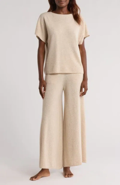 Envelop yourself in the luxe comfort of this matching cashmere lounge set that pairs a short-sleeve top with flared, wide-leg pants. Top has fixed hood; short sleeves; ribbed cuffs and hem Bottoms are pull-on style; front slant pockets 100% cashmere Hand wash, dry flat Imported