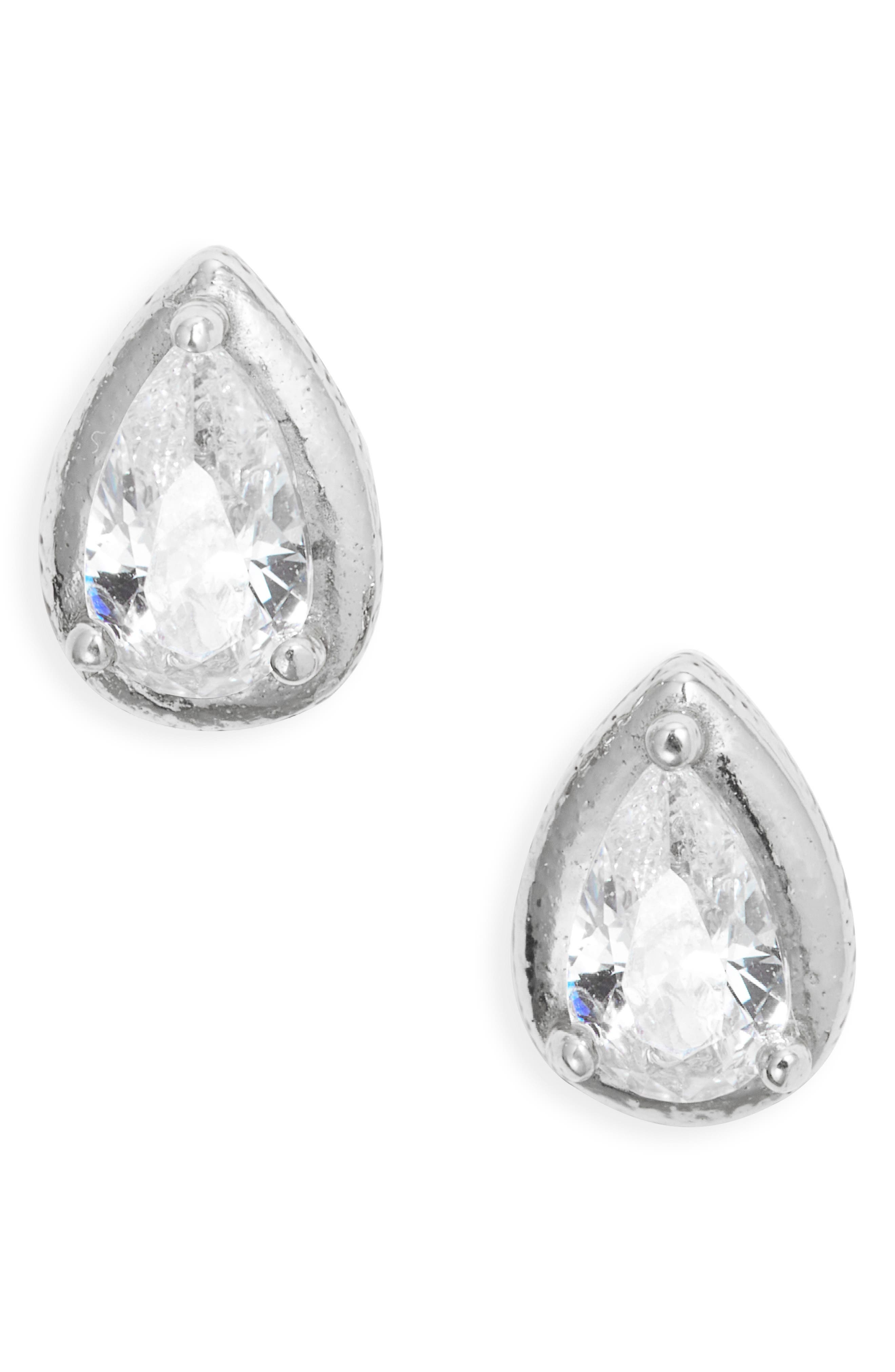 Accessorize with subtle glamour in these gleaming stud earrings set with sparkling teardrop stones. 6.35mmW x 9.5mmL Post back Sterling silver/platinum plate/cubic zirconia or sterling silver/14k-gold plate/cubic zirconia Imported