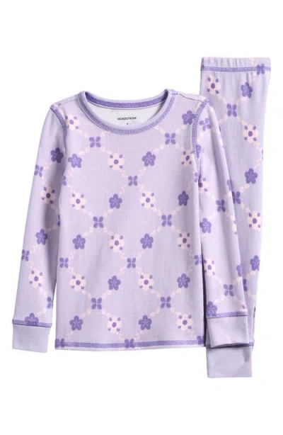 NORDSTROM Kids' Print Fitted Cotton Two-piece Pajama Set In Purple Petal Lattice