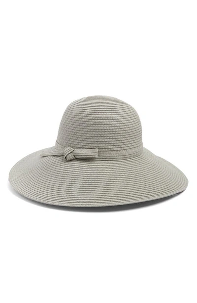 A matching band wraps the crown of this jetsetting floppy hat designed from flexible straw for easy packing.