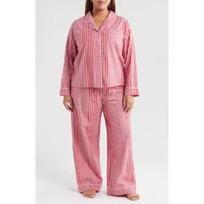 NORDSTROM Print Cotton Pajamas In Red- Pink Gradient Plaid