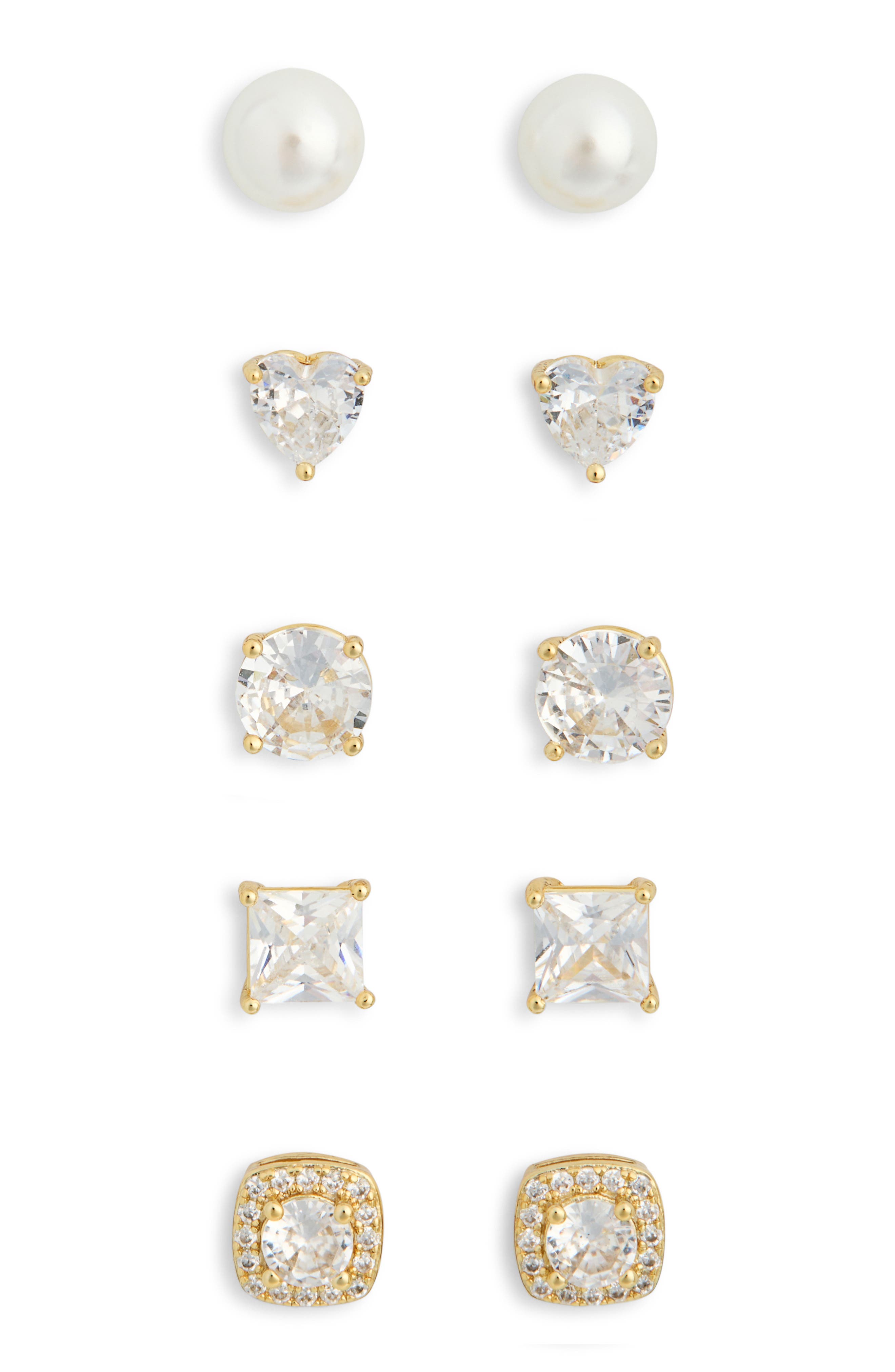 5-pack Assorted Cz & Imitation Pearl Stud Earrings In Multi