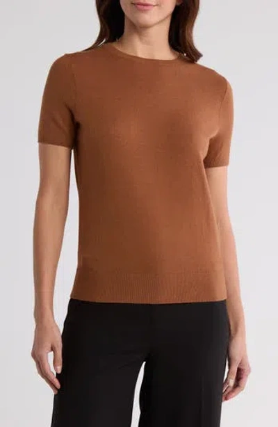 NORDSTROM Slim Fit Short Sleeve Sweater In Rust Bisque