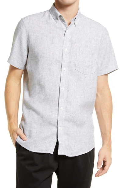 NORDSTROM Solid Linen Short Sleeve Button-down Shirt In Grey Tornado