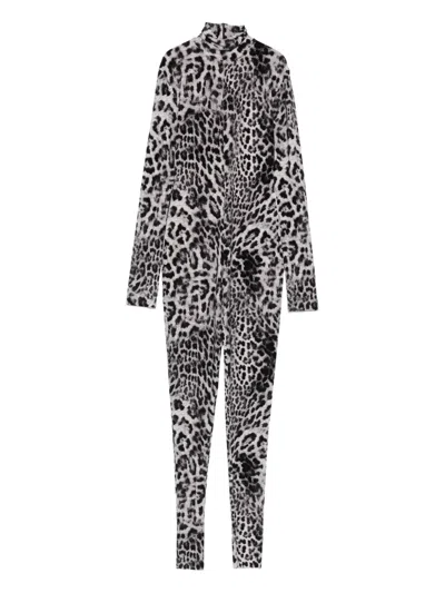 NORMA KAMALI Leopard-print Turtleneck Jumpsuit In Black