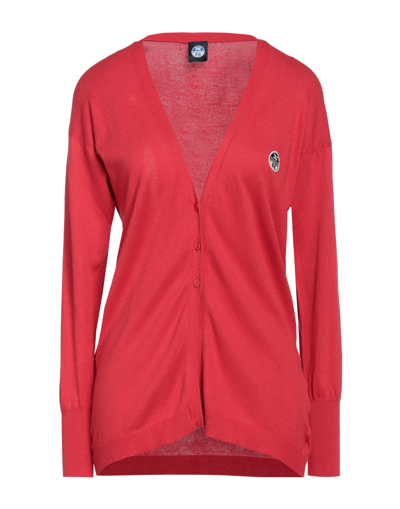knitted, lightweight knit, brand logo, solid color, deep neckline, long sleeves, elasticated cuffs, button closing, no pockets , Color: Red , Size: L
