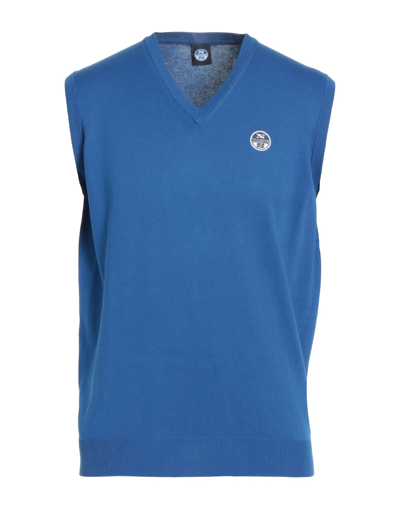 knitted, lightweight knit, brand logo, solid color, sleeveless, v-neck, no pockets , Color: Bright blue , Size: M