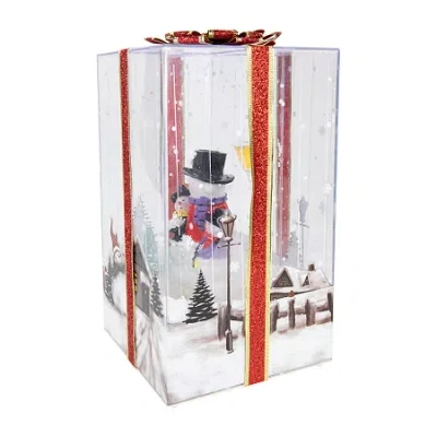 This unique snowman snowing gift box is the perfect addition to your Christmas decor simply turn it on and watch it come to life it's illuminated by a warm white light while cascading snow creates a wintry scene classic Christmas tunes fill the air adding to the holiday feel perfect for table tops and mantles product features: Christmas gift box snow globe features a family of snowmen in a snow-filled scene the inside is illuminated by a warm white light plays a variety of classic Christmas carols ac/dc adapter input: 100-240 volts 50/60 hertz 0.6 amps output: 5 volts convenient on/off switch on the bottom for indoor use only dimensions: 12"h x 6.75"w x 6.75"d material(s): plasticFeatures: LightedLight Functions: ConstantLight Bulb Type: LedPower Source: Ac/DcShape: RoundSong Title: O Holy NightUse: IndoorWattage (watts): 12wLight Bulb Color: Warm WhiteMeasurements: 6.75 Depth/Inches, 6.75 Width/Inches, 12 Height/InchesWeight (lb.): 2 LbAssembly: AssembledBase Material: 100% PlasticCare: Spot CleanDecor Styles: ModernCountry of Origin: Imported