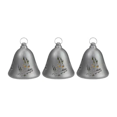 Ring in the Christmas season with this set of 3 musical silver bells! They play 15 Christmas carols as led's flash in time to the music. The music and light show are motion activated and you can control the volume of the music using a switch on the inside of the first bell. Each bell comes with its own hanging hook, so it is easy to display. Perfect for displaying on your Christmas tree dining table or entryway.Features:Set of 3 silver musical hanging bellsBells have a holly berry cut out design.Plays 15 different Christmas carols.Illuminated with long lasting warm white led lights.Motion sensor activationFor indoor use onlyRequires 3 "c" size batteries - not included.Christmas carol list:The first noelO come all ye faithfulJolly old St. NicholasSilent nightJingle bellsAway in a mangerDeck the halls.Hark! The herald angels sing.Here we come a-caroling.12 days of ChristmasO little town of BethlehemGood king WenceslasGod rest ye merry gentlemen.Up on the housetopWe wish you a merry Christmas.Dimensions: 6.5" high x 6" diameterMaterial(s): plastic# Pieces In Set: 3Number of Batteries: 3Number of Lights: 3Features: Pre-LitLight Functions: ConstantLight Bulb Type: LedPower Source: Battery (not Included)Song Title: the First NoelUse: IndoorLight Bulb Color: ClearMeasurements: 6.5 Height/Inches, 6 Depth/Inches, 6 Width/InchesWeight (lb.): 1.5 LbAssembly: AssembledBase Material: 100% PlasticBattery Size: CCare: Spot CleanDecor Styles: ModernCountry of Origin: Imported