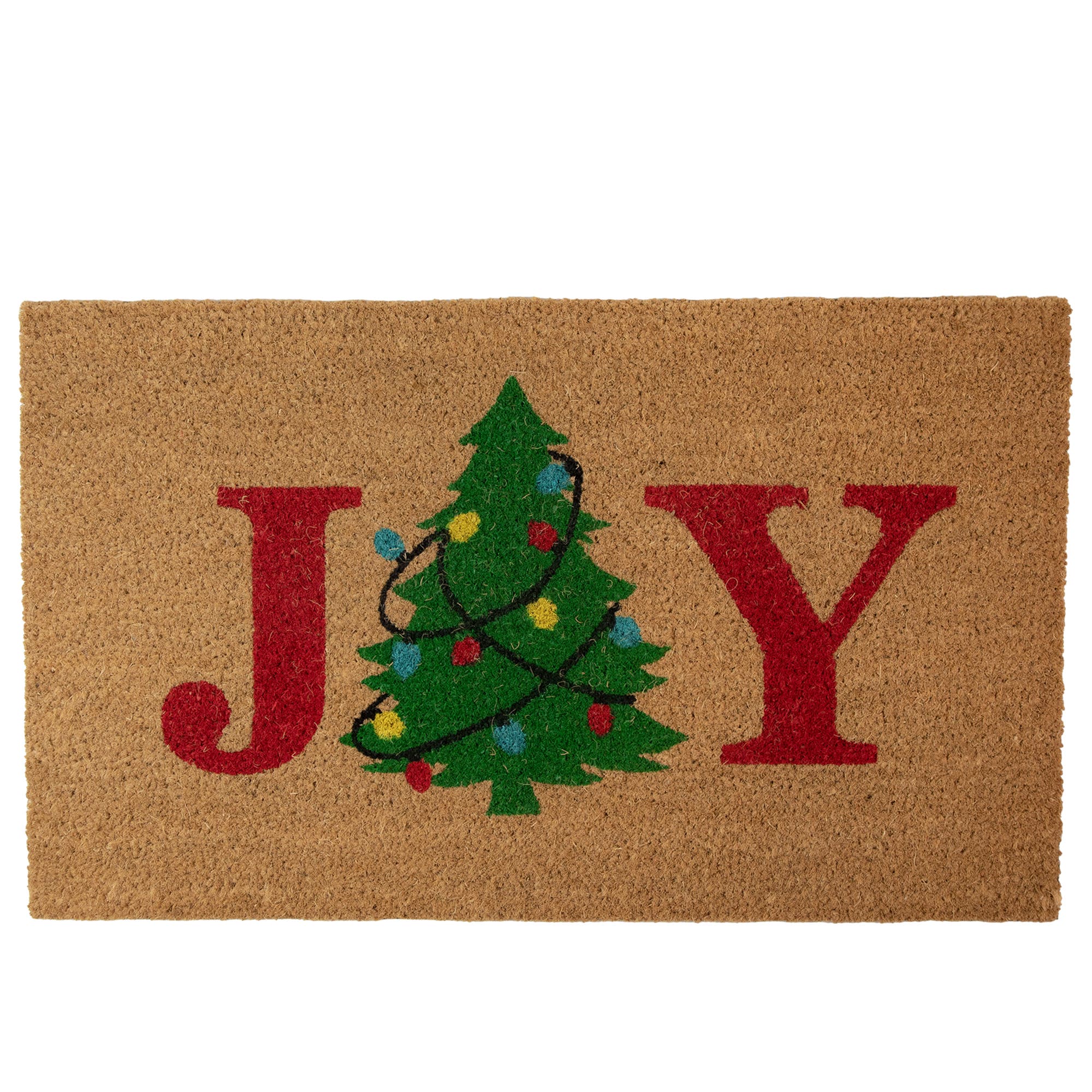 Add this festive christmas doormat to your holiday decor. Featuring "joy" in red print and accented with a christmas tree as the letter o this mat will welcome guests into your home this holiday season. This doormat has been made for long-lasting durability and color. Add this to your front or back doors to your porches or patio area and start creating your christmas memories! product features: rectangular christmas doormat. The center of the mat reads "joy" with a christmas tree design. Non-skid durable backing which helps to keep your doormat securely in place. Recommended for outdoor use. Care instructions: sweep or lightly hose clean air dry. Dimensions: 18"h x 30"w x 0.75"d. Material(s): coir/rubber.Features: Skid ResistantRug Backing: RubberRug Make: Machine MadeRug Pad: Not RecommendedShape: RectangleUse: IndoorMeasurements: .75 Height/Inches, 18 Depth/Inches, 30 Width/InchesBase Material: 100% CoirPile Height: 3/4 InCare: Machine WashDecor Styles: TraditionalMaterial: CoirCountry of Origin: Imported