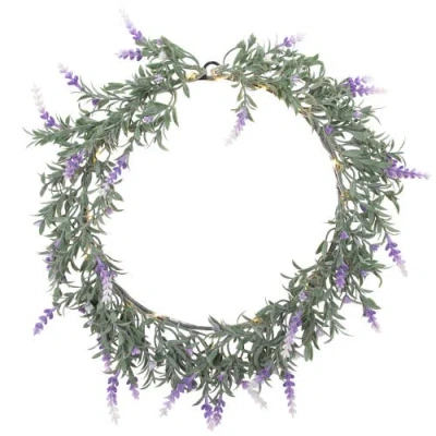 Add a soft touch to your spring decor while adding a pop of color with this Lavender wreath. The realistic white and purple Lavender is intertwined with green foliage to offer a more realistic look. Accented with white LED fairy lights for an added sparkle to any decor. Hang on any wall or door or use as a centerpiece with your favorite candle in the center.Product Features:Artificial lighted lavender flower wreathColor: white bulbs / silver copper wireNumber of bulbs on string: 20Bulb size: fairyBulb type: LEDRequires (3) 'AA' batteries - not includedConvenient on/off switch on battery packLED lights 90% less energyBulb stay cool to the touchUL certified and approved for indoor use onlyNon-replaceable bulbsCannot connect multiple sets togetherIncludes a heavy duty ring metal frame backing for hanging No assembly required - wreath comes in 1 pieceDimensions: 3" high x16" diameter (measured from outermost edge to outermost edge across the wreath)Material(s): plastic/metal Artificial LED lighted white and purple lavender flower spring wreath Pre-lit by 20 white LED fairy lights; Requires 3 'AA' batteries not included Heavy duty metal ring backing for hanging Recommended for indoor decorative use only