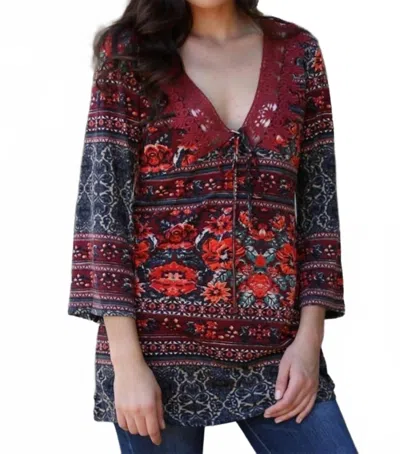 Floral V-neck In Red In Multi