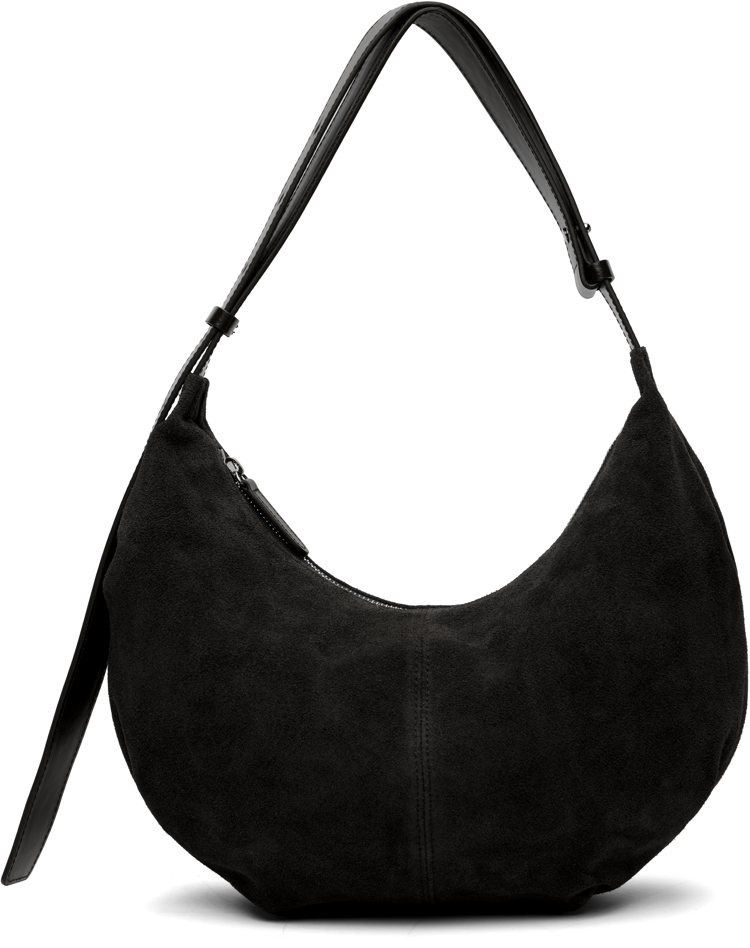Suede shoulder bag. · Adjustable buffed leather shoulder strap · Pleats at sides · Zip closure · Zip pocket at interior · Cotton canvas lining · H9.5 x W13 x D2 Supplier color: Black