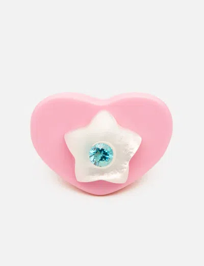 NOTTE Star Glow Puff Ring Solid resin ring Hand-carved Mother-of-pearl with gold vermeil detail Embellished with cubic zirconia Minor variations on each piece due to the nature of handmade and natural materials Color: Pink